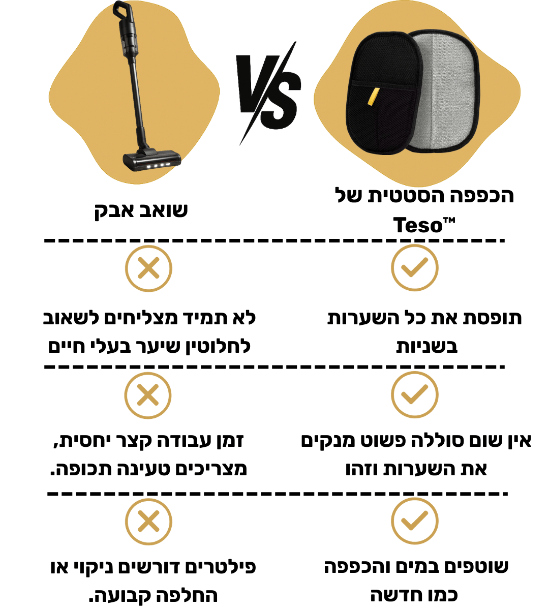 הכפפה שלנו מסירה שערות מכל משטח בבית באפס מאמץ.