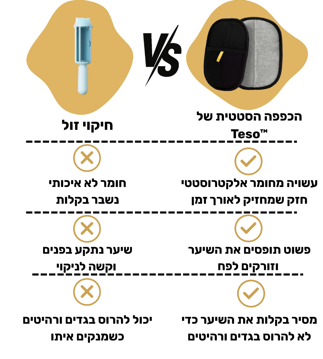 הכפפה שלנו משתמשת בטכנולוגיה אלקטרוסטטית ייחודית, שתופסת את השיער ומרכזת אותו אל אמצע הכפפה — כך שקל מאוד להסיר אותו.